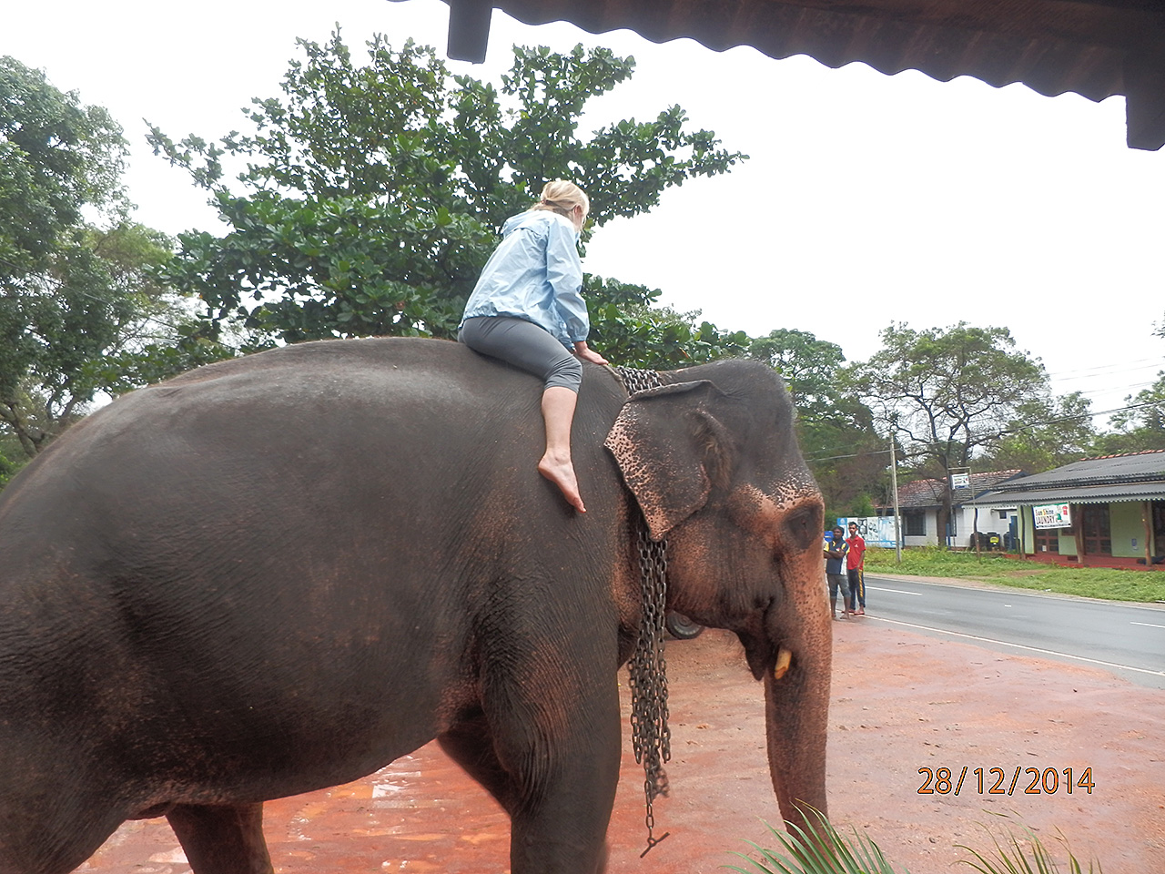 慣れない観光客が一人で象に乗っている様子。ビビりまくっていた。
