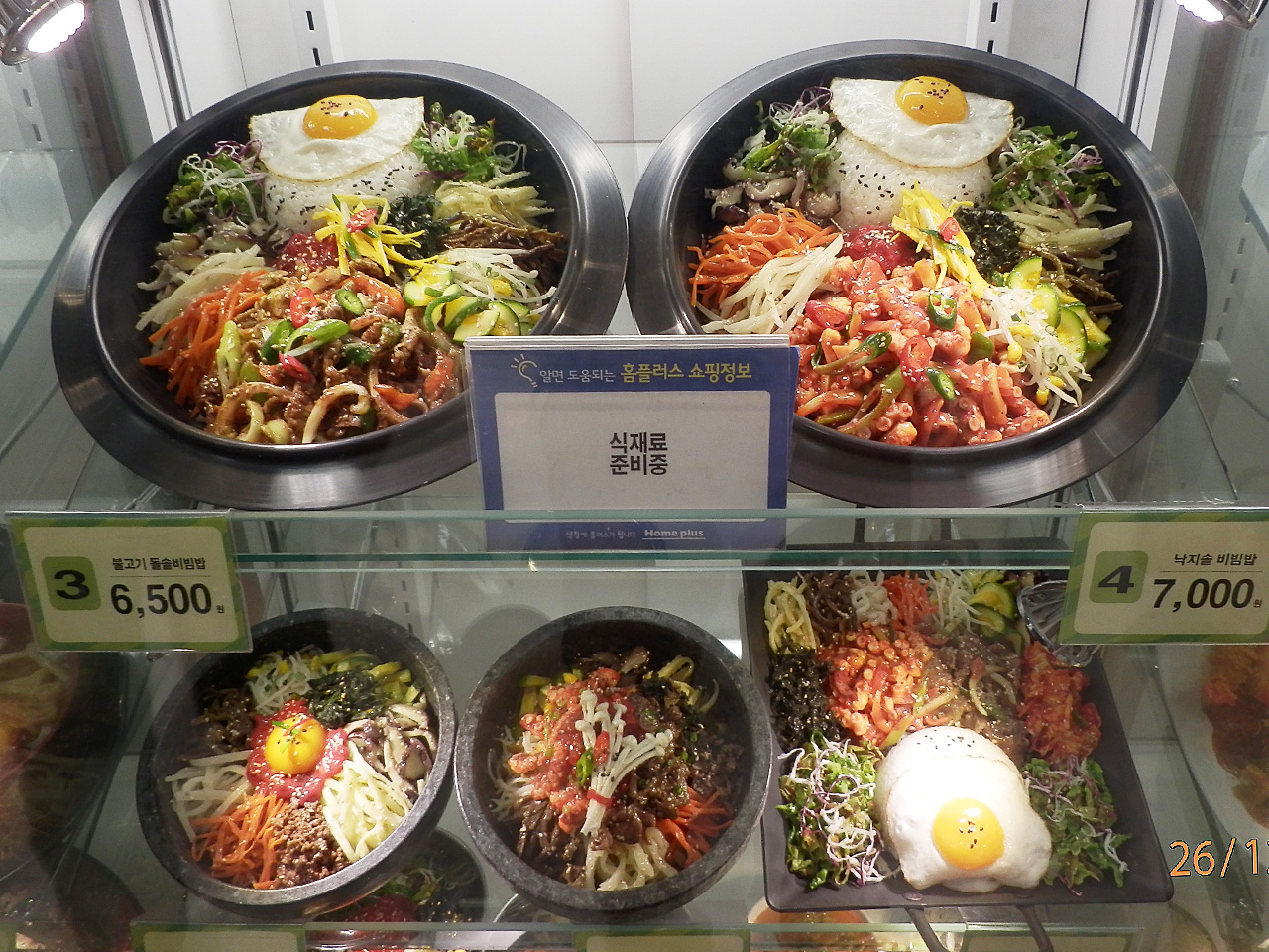 ビビンバの食品サンプル。韓国のフードコートで見つけた。 ビビンバの価格は7,000ウォン程度。日本のビビンバと比べると特に安いわけではない。 具材が豊富なのは本場ならではのところか。