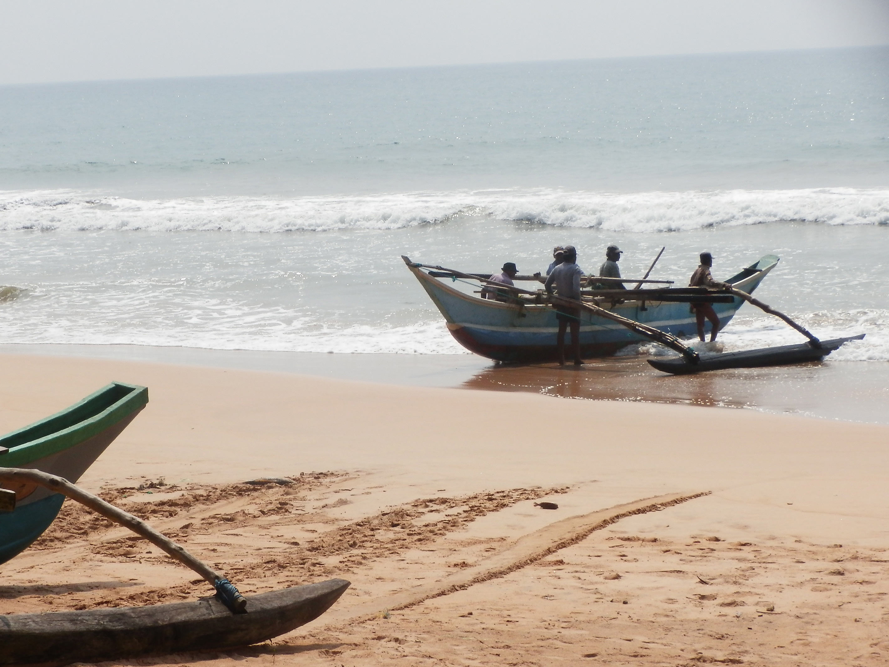 スリランカのビーチで見かけた木造船。とても古めかしく、日本ではまず見かけないような形。