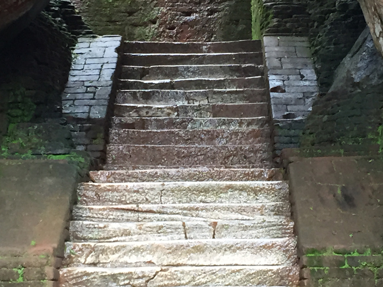 天気が悪く、シーギリヤロックを登る階段は、まるで滝のようになっていた。