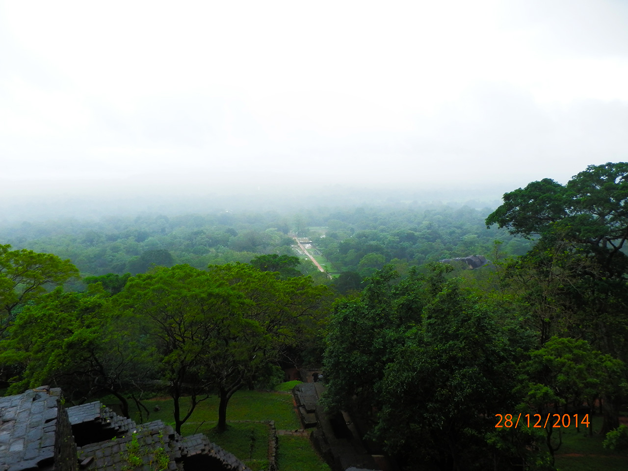 シーギリヤロック頂上からの眺め。天気が良ければ360度ジャングルが見渡せるのだけど、この日は天気が悪く、ガスっぽかった。